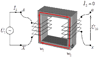 Предположим, что трансформатор работает в режиме холостого хода, то есть к зажимам первичной обмотки подведено напряжение