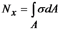 Продольная сила N приложена в центре тяжести поперечного сечения стержня и является равнодействующей нормальных напряжений: