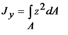 Осевым моментом инерции сечения называется взятая по всему сечению сумма произведений элементарных площадок на квадраты их расстояний до некоторой оси, лежащей в плоскости рассматриваемого сечения. Так, относительно осей у и z (рис. 4.1) осевые моменты инерции определяются интегралами вида: