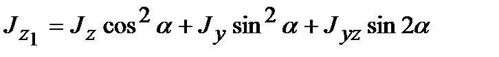 Найдем зависимость между моментами инерции относительно осей y, z и моментами инерции относительно осей y1, z1, повернутых на угол a. Пусть Jy > Jz и положительный угол a отсчитывается от оси y против часовой стрелки. Пусть координаты точки М до поворота – y, z, после поворота – y1, z1 (рис. 4.4).