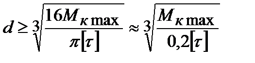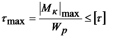 Условие прочности при кручении с учетом принятых обозначений формулируется следующим образом: максимальные касательные напряжения, возникающие в опасном сечении вала, не должны превышать допускаемых напряженийи записывается в виде