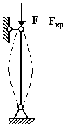Нагрузка, при которой начальная (исходная) форма равновесия стержня перестает быть устойчивой, называется критическойи обозначается Fкр. Приложение к стержню силы