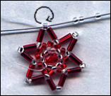 5. Возьмём три серебристые бусинки и сделаем такие вот макушечки. Повторим эту процедуру на каждом лучике. Всё у нас получилась звезда из бисера.
