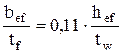 В балках отношение ширины свеса сжатого пояса bef к его толщине tfне должно превышать: