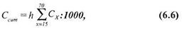 где h —длина возрастного интервала, Сх — повозрастные коэффициенты брачности. При этом браки, заключенные после 69 лет, условно относят к предыдущей возрастной группе.