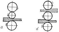 а-слябинг; б-табақ илемдейтін қапас(эджер); в-арқалық (балка) илемдейтін қапас.