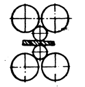 Көппішінбілікті қапастар. Екі жұмыс және төрт тіреуіш пішінбілікті алтыпішінбілікті қапастар жұмыс қапасының жоғарғы қатаңдығын және жұмыс пішінбіліктерінің ең аз иілуін қамтамасыз етеді (Сурет 2.4). Мұндай сипат өте жұқа тілкем мен шақтамасы төмен орамдықтағы енсіз таспаны суықтай илемдеу кезінде аса қажетті болып табылады.