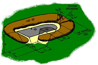 Окопы для автоматчика для стрельбы из положения лежа (рис. 2) представляют собой подгабаритную выемку с передним бруствером, в которой устраивается бойница.