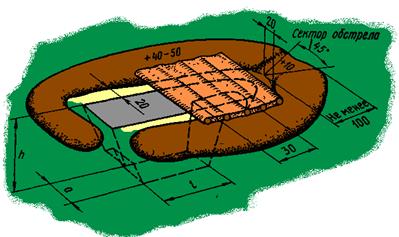 Окопы для автоматчика, оборудованные для стрельбы из положения с колена (рис. 3) и стоя (рис. 4), представляют собой подгабаритную выемку с соответственно трехсторонним и круговым бруствером, в которой устраивается бойница, обеспечивающая возможность ведения огня в секторе 45° - для автоматчика.