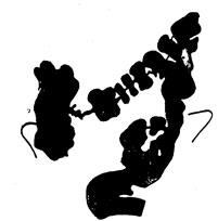 Рис. 3022708710. Картина толстой кишки после подкожного введения пилокарпина. Выраженная глубокая гаустрация. Спазмы. Укорочение поперечноободочной кишки. Ваготония.[44]