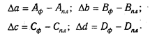 Розглянемо алгоритм розрахунку для мультиплікативної факторної моделі типу Y = axbxcxd. Є планові і фактичні значення по кожному факторному показнику, а також їх абсолютні відхилення: