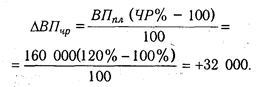 Для того щоб встановити, наскільки змінився обсяг валової продукції за рахунок чисельності робітників, необхідно планову його величину помножити на відсоток перевиконання плану по чисельності робітників ЧР%: