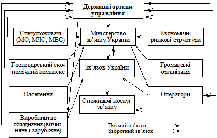 Схема взаємодії зв’язку в Україні з державними, громадськими та економічними (ринковими) структурами