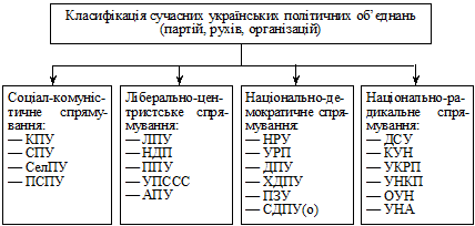 Сьогодні в Україні понад 130 політичних партій і рухів (зареєстровано більш як 80), але жодна з них не має достатнього впливу в загальнонаціональному вимірі (схема 39).