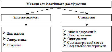 Метод — це сукупність прийомів, способів та операцій теоретичного і практичного освоєння та перетворення соціальної, економічної, політичної та духовно-культурної реальності. Таку сукупність прийомів, способів та операцій називають методикою соціологічного дослідження, але вона використовується не лише в теоретичній та емпіричній дослідній діяльності, а й у соціальній практиці (схема 55).