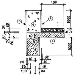 | 1) керамзитобетон, g=1200 кг/м3. 2) залізобетон, g=2500 кг/м3. 3) ЦП розчин, g=1600 кг/м3. 4) ЦП штукатурка, g=1600 кг/м3. 5) опоряджувальний шар, g=1800 кг/м3. 6) гіпсова плита, g=1200 кг/м3. 7) повітряний прошарок. | k підвал=0,16 | |||