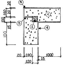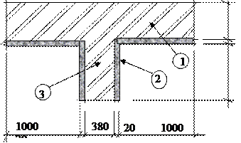 | 1) керамзитобетон, g=1200 кг/м3. 2) залізобетон, g=2500 кг/м3. 3) ЦП розчин, g=1600 кг/м3. 4) ЦП штукатурка, g=1600 кг/м3. 5) опоряджувальний шар, g=1800 кг/м3. | k кута = 0,23 |