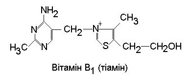 Будова і фізико-хімічні властивості. Молекула тіаміну складається з двох компонентів – похідного піримідину (2-метил-5-гідроксиметил-6-амінопіримідину) і похідного тіазолу (4-метил-5-гідроксіетилтіазолу):