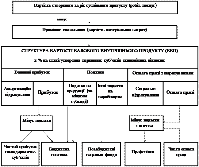 Доходи суб’єктів економічних відносин у процесі первинного розподілу вартості суспільного продукту набувають форми первинних доходів. Джерелом формування цих доходів є валовий внутрішній продукт, який утворюється внаслідок відшкодування матеріальних затрат.