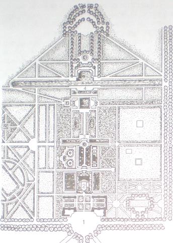 1 – вход, 2 – дворец, 3 – партер, 4 - канал