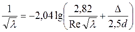 Ця формула має теоретично обґрунтовану структуру і є результатом обробки дослідних даних Нікурадзе. Формула Конакова, як і формула (4.60), дає задовільні результати в усьому діапазоні зміни Re.