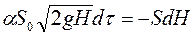 . Рівень рідини змінюється на dH, а dV = -SdH, де S - площа поверхні рідини у судині. Прирівняємо об’єм рідини, що пройшов через отвір, до об’єму, який витік: