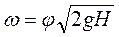 При витіканні із затопленого отвору (див. рис. 26) швидкість витікання розраховується за формулою: