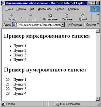 Пример 4. HTML-документ с маркированным и нумерованным списками