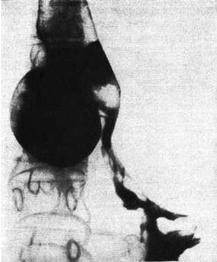 Рис. 37. Рентгенограмма пищевода при эпифренальном дивертикуле