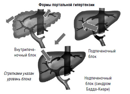 Как видно из классификации, подавляющее большинство случаев портальной гипертензии приходится на внутрипеченочную форму, как правило, связанную с циррозом печени.