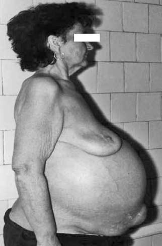 С возникновением асцита больных начинает беспокоить дискомфорт, чувство тяжести в животе, увеличение живота. При большом, напряженном асците появляется одышка, особенно в горизонтальном положении, могут формироваться пупочные, паховые грыжи (рис. 82). Резистентный асцит при циррозе печени развивается в 60 % случаев, летальный исход в течение года– 50 %.