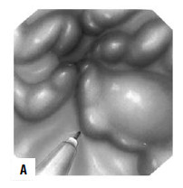 Для каждого вида кровотечения применяют свой метод гемостаза. Важно выбрать адекватный способ, поскольку второй попытки остановки кровотечения может и не представиться. Для определения источника кровотечения используют срочную фиброэзофаго‑гастродуоденоскопию (ФЭГДС), во время которой подтверждают диагноз варикозного расширения вен пищевода, определяют зону нарушения целостности вены и интенсивность кровотечения. При умеренном кровотечении из варикозных вен пищевода, синдроме Мэллори‑Вейса или язвы двенадцатиперстной кишки сразу может быть предпринята попытка его эндоскопической остановки. Наиболее эффективным методом остановки кровотечения из варикозных вен пищевода является их эндоскопическое лигирование. При этом эффективность метода достигает 90 %, а количество рецидивов составляет примерно 10 % (рис. 85).