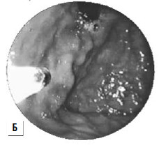 Рис 87. Паравазальное склерозирование. А) момент операции; Б) результат операции