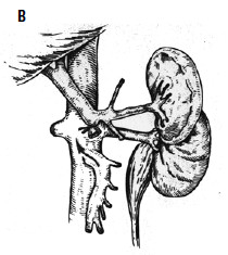 Рис. 89. Варианты искусственных портокавальных анастомозов: А – проксимальный спленоренальный; Б – дистальный спленоренальный;
