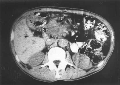 Компьютерная томография (КТ) является рентгенологическим методом высокой разрешающей способности, достаточно широко используемым при исследовании ПЖ. В принципе метод позволяет получить данные, аналогичные УЗИ, однако в ряде случаев дает возможность уточнить последние, например, при ожирении больного, наличии метеоризма, преимущественной локализации изменений в области хвоста железы (рис. 140).