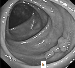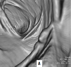Рис. 186. А – виртуальная колоноскопия, Б – фиброколоноскопия