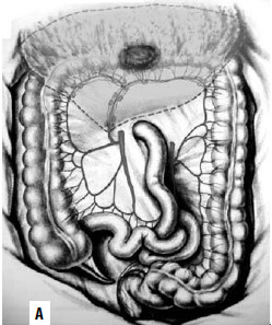 Рис. 189. Левосторонняя гемиколэктомия (анастомоза между подвздошной