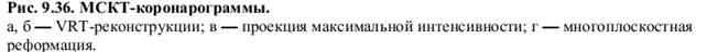 В последующей обработке изображений используются различные виды реконструкций: многоплоскостные реформации (MPR), проекция максимальной интенсивности (MIP), трехмерные (VRT) (рис.).