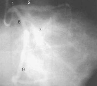 Рис. 9.45. Левая коронарная артерия в правой косой проекции.