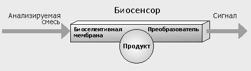 Медициналық диагностикада ең алдымен биосенсорлар пайда болды – бұл аналитикалық қондырғы, нақты молекулаларды «тани алатын» және олар туралы ақпаратты және оның көлемін электр сигнал ретінде көрсететін биологиялық материалды қолданылады. Биосенсор екі құрылымды компоненттерден тұратын қондырғы (сур.12). Бірінші компоненті сезімтал, биологиялық табиғатты элементті тани алады (биоселективті мембрана, биоселекті материал - бұл ферменттер, тін клеткалары, микроорганизмдер клеткалары және т.б.), тексерілетін ортада бірден әсер етеді, талданатын қоспамен селективті түрде өзара байланысады. Екінші компонент – физикалық-химиялық өзгертуші (трансдьюсор, ағылшын тілінен transducer - өзгертуші).