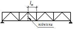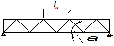 Трикутна решітка (рис. 8.12) має найменшу сумарну довжину решітки і найменшу кількість вузлів серед усіх решіток, а також найкоротший шлях передачі зусилля від місця прикладання навантаження до опори. Раціональний кут нахилу решітки до горизонту α=450. Недолік такої решітки – значна довжина панелей поясів lm, особливо при великій висоті ферм. Це вимагає підвищених витрат сталі для забезпечення стійкості стиснутого поясу.