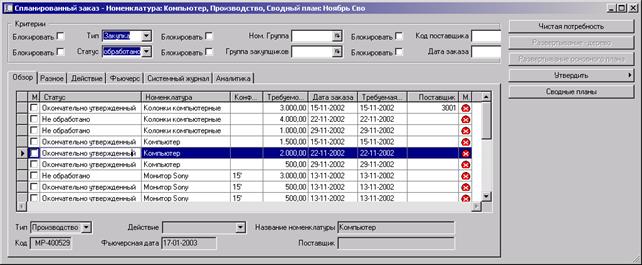 Рис. 18. Сводное планирование в системе «АКСАПТА»