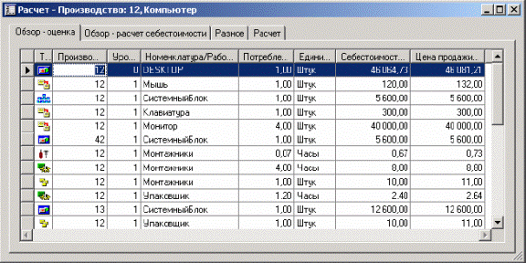 Кроме того, система рассчитывает потребление комплектующих на единицу продукции, а также себестоимость и цену каждого элемента комплектации.