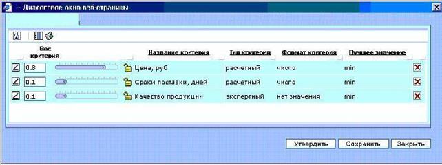Все критерии, их весовые коэффициенты и оценки поставщиков и их предложений хранятся в архиве для последующего анализа. Кроме того, анализ архивных данных может привести к фиксации наиболее выгодных для государственного заказчика набора критериев и их весовых коэффициентов.