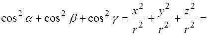 т.е. сумма квадратов направляющих косинусов радиус-вектора точки пространства равна единице.