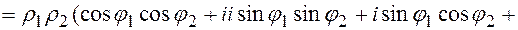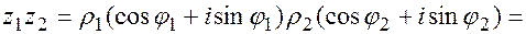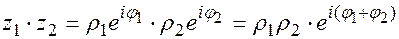 При умножении двух комплексных чисел заданных в тригонометрической или показательной формах их модули перемножаются, а аргументы складываются: