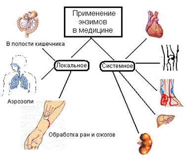Сурет 47. Медицинада ферменттік препараттардың терапиялық қолданылуы.