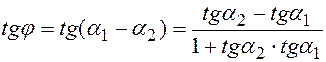 (или в виде (7.7)). Тогда угол между прямыми, определяется как разность углов наклона прямых к положительному направлению оси