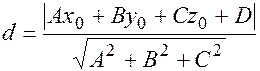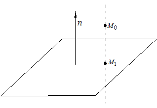 Поскольку расстояние от точки до плоскости есть проекция вектора соединяющего эту точку и любую точку на плоскости на нормальный вектор плоскости, поэтому