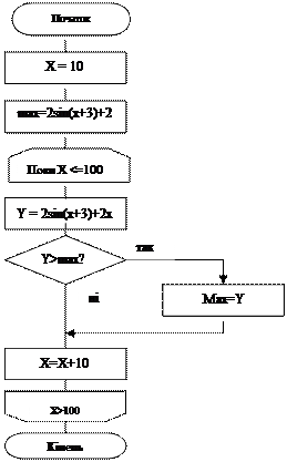 Приклад 4.Знайти найбільше значення функції Y=2sin(X+3)+2X на проміжку [10,100] в точках з кроком 10.
